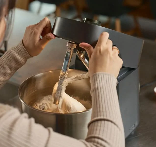 Be to, jis turi lankstų plakiklį, kuris neleidžia tešlai prilipti prie indo kraštų ir dugno, užtikrinant tobulą ir vienodą maišymą.