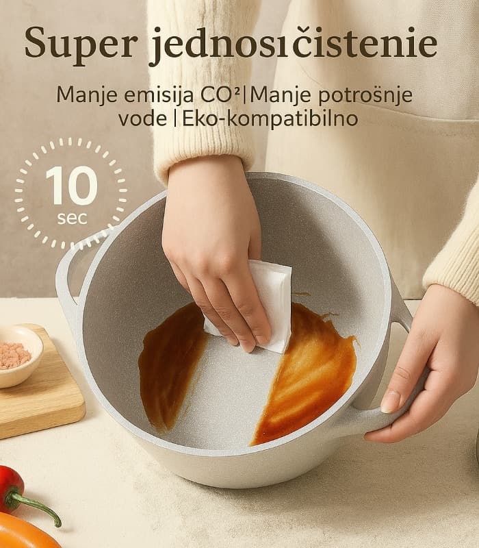 Naša troslojna konstrukcija dizajnirana je tako da osigurava ravnomjernu i postojanu toplinu po cijeloj površini tave, što vam omogućuje da svoja jela skuhate do savršenstva.