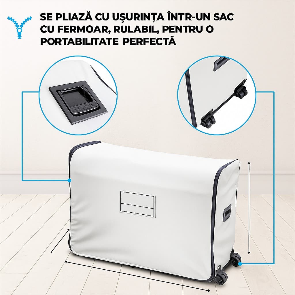 Ușor de depozitat și transportat, este soluția ideală pentru cei care caută practicitate și confort fără compromisuri.
