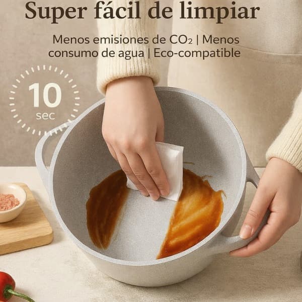 Nuestra estructura de tres capas está diseñada para garantizar un calor uniforme y constante en toda la superficie de la sartén, lo que le permite cocinar sus platos a la perfección.