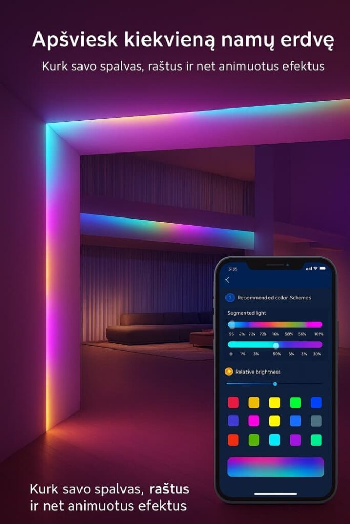 Pakeiskite bet kurią patalpą naudodami išmaniąją LED juostą, sukurtą tam, kad bet kuriuo paros metu sukurtų tobulą atmosferą.