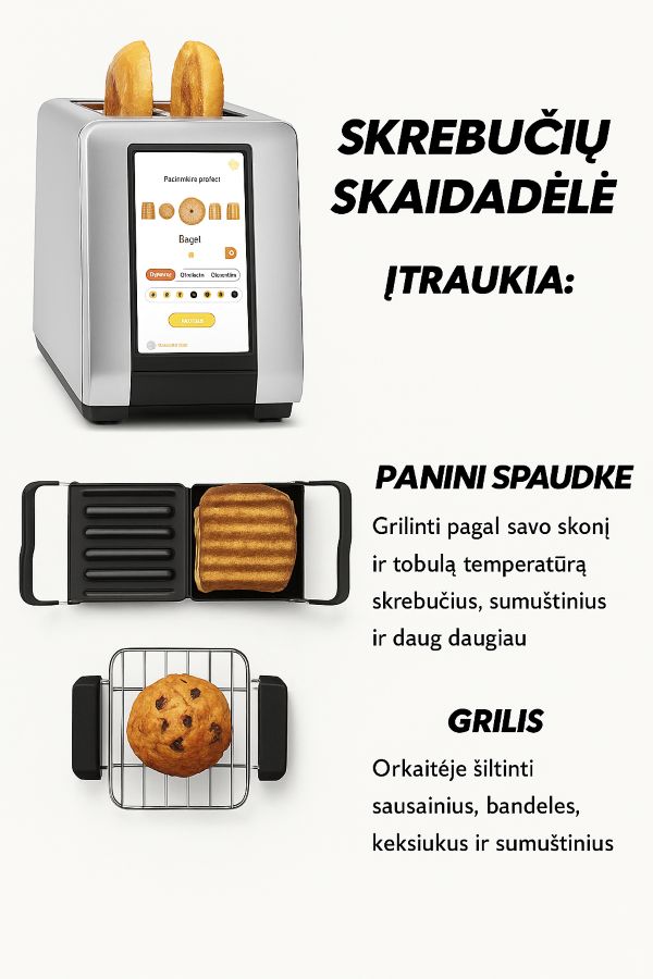 Galite lengvai nustatyti skrudinimo laiką ir pageidaujamą skrudinimo lygį.