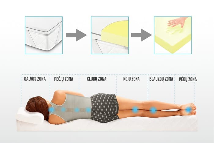 Jis idealiai tinka visoms pozicijoms, kurias užimame miegodami, nes medžiaga prisitaiko ir leidžia tolygiai paskirstyti kūno svorį.